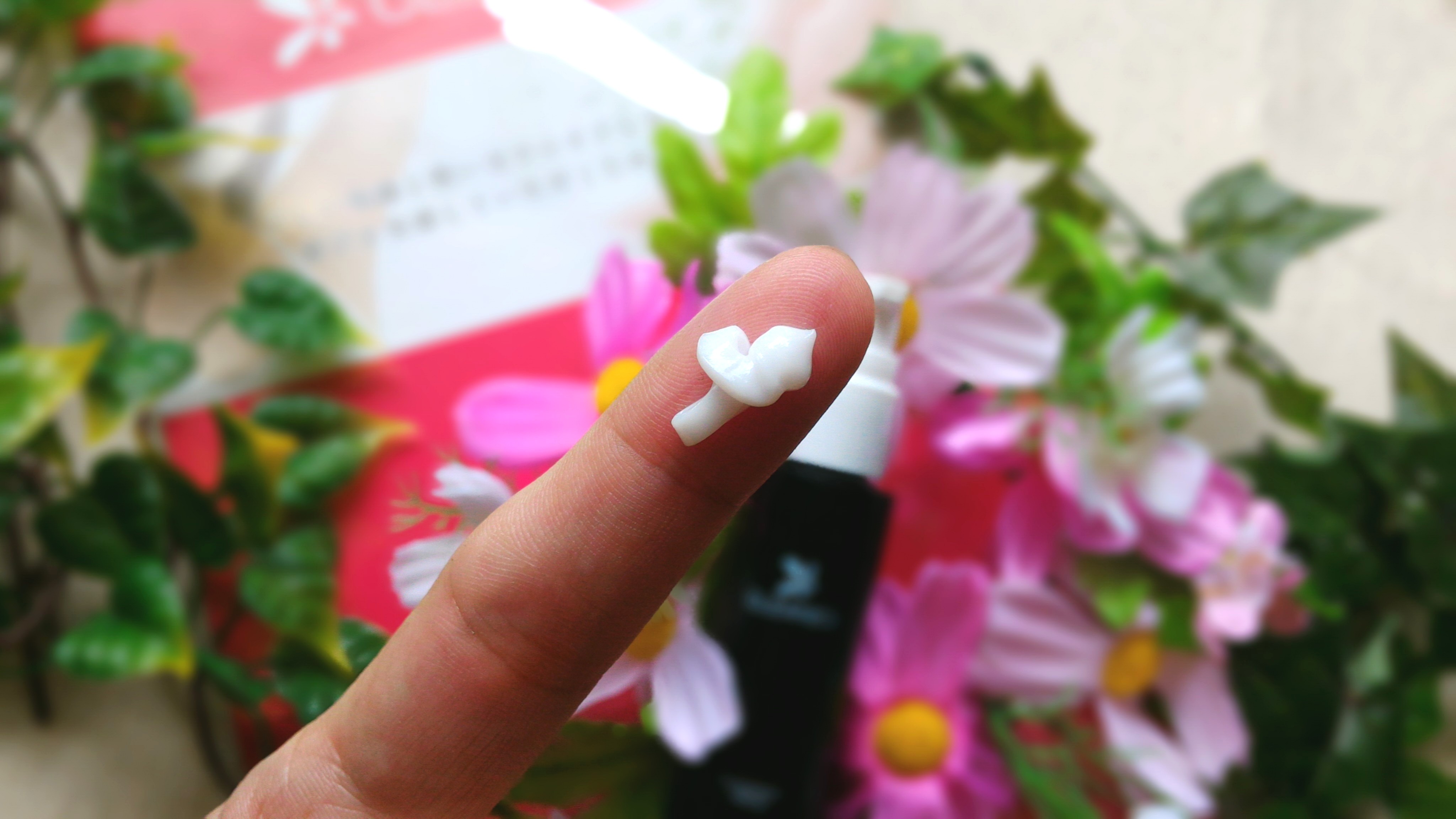 手に取ってすぐは白いですが塗ると無色透明で無臭です。クリームですがベタベタすることもなく塗ったらすぐにサラサラ感があります。